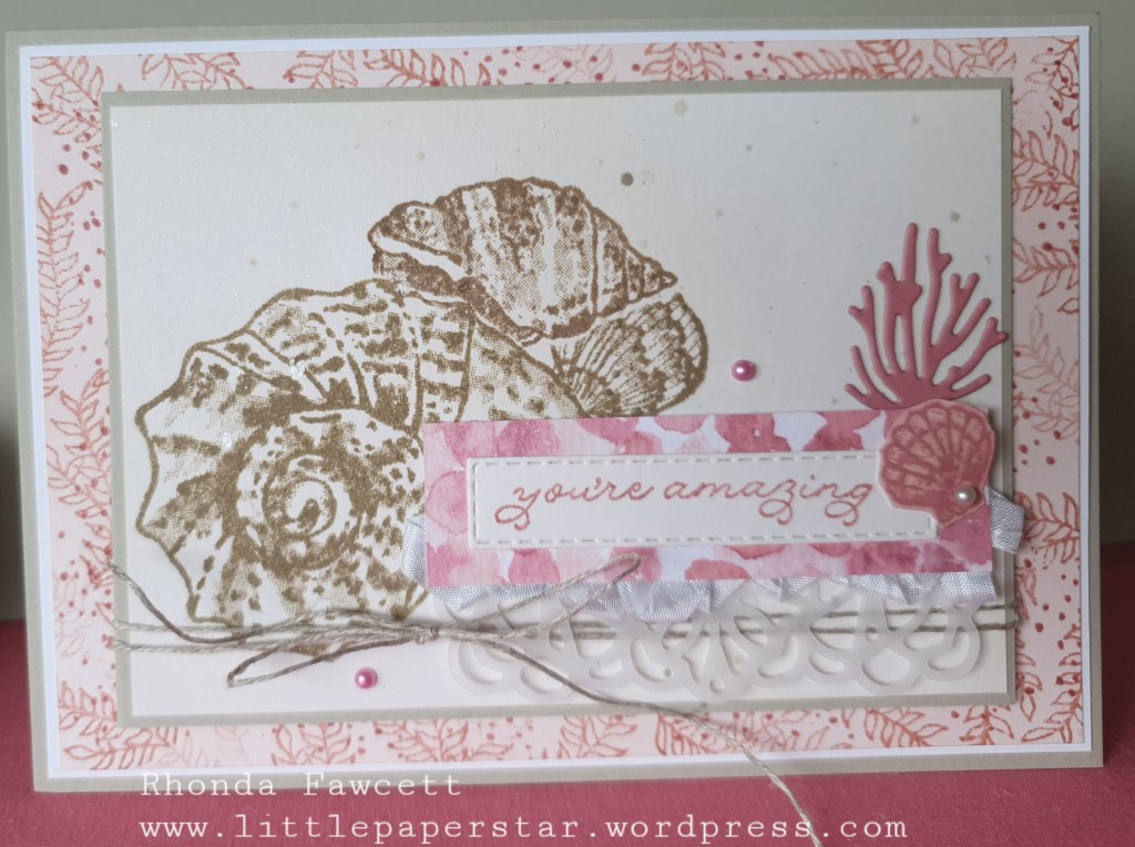 This card is totally not the colours that I would normally do for a beach type card but it was inspired by one taught to us, last weekend at our Stampin’ Up! demonstrator camp.