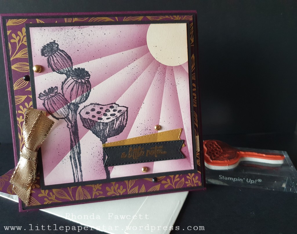I used the Enjoy Every Moment stamp set. The lovely papers are new, and are called Blackberry Beauty Speciality paper. They have gorgeous gold foil accents.