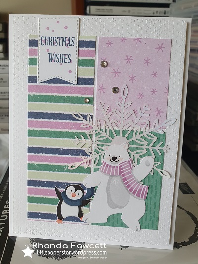 I finally got around to making a this card with the free paper that I got during the recent Stampin’ Up! sale-a-bration. The Paper is called Penguin Playmates and have large images that you can fussy cut out as well as patterned pieces that you can use for the background.