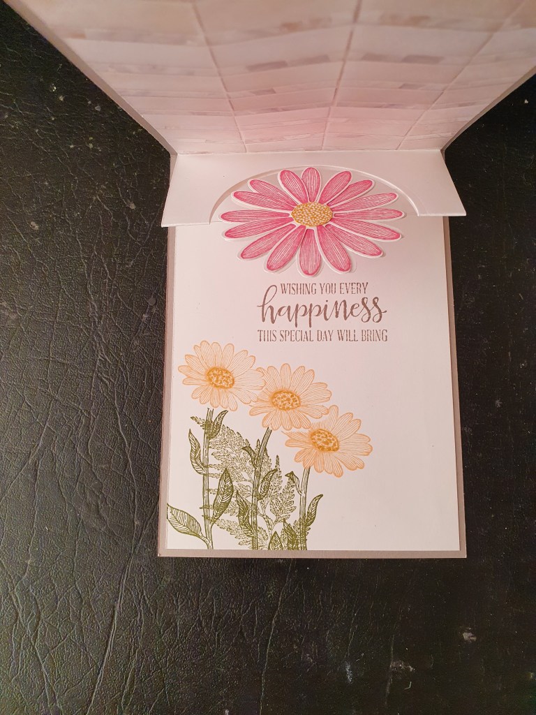 The special thing about this card is that it has a surprise pop up with a floating daisy inside.