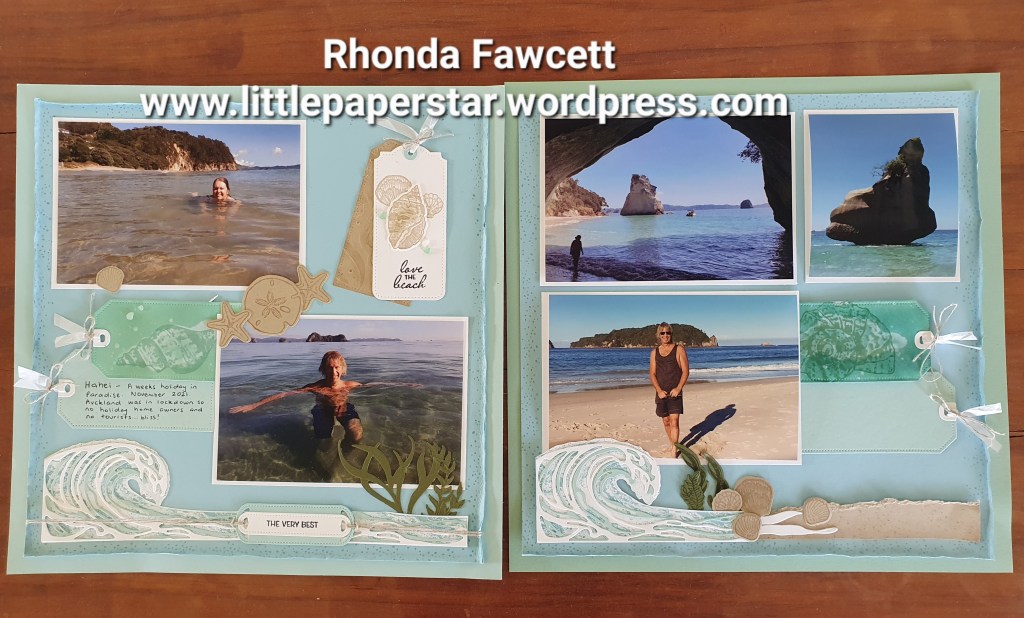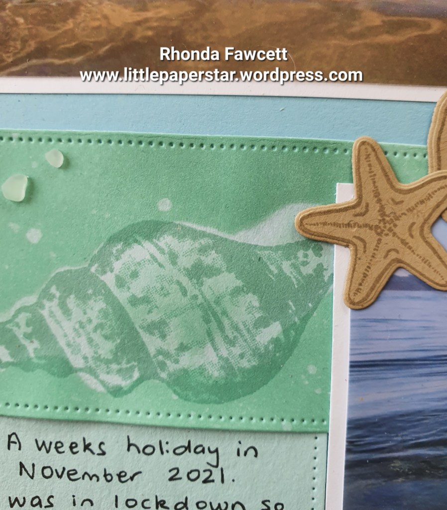 I decided to make the wave come up to the sand for my second page and I used from pieces of white card left over from the wave die cut to make foam in the sand.