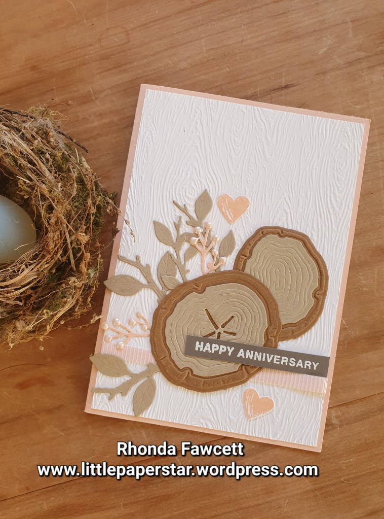 The ringed with nature stamp set is so versatile. I have made birthday cards, welcome to your new home and get well cards using it. Now here’s an anniversary one. If I took the hearts off and added some Pebbled Path gray numbers, I could make them into cards for my team members who reach milestone years with Stampin up!
