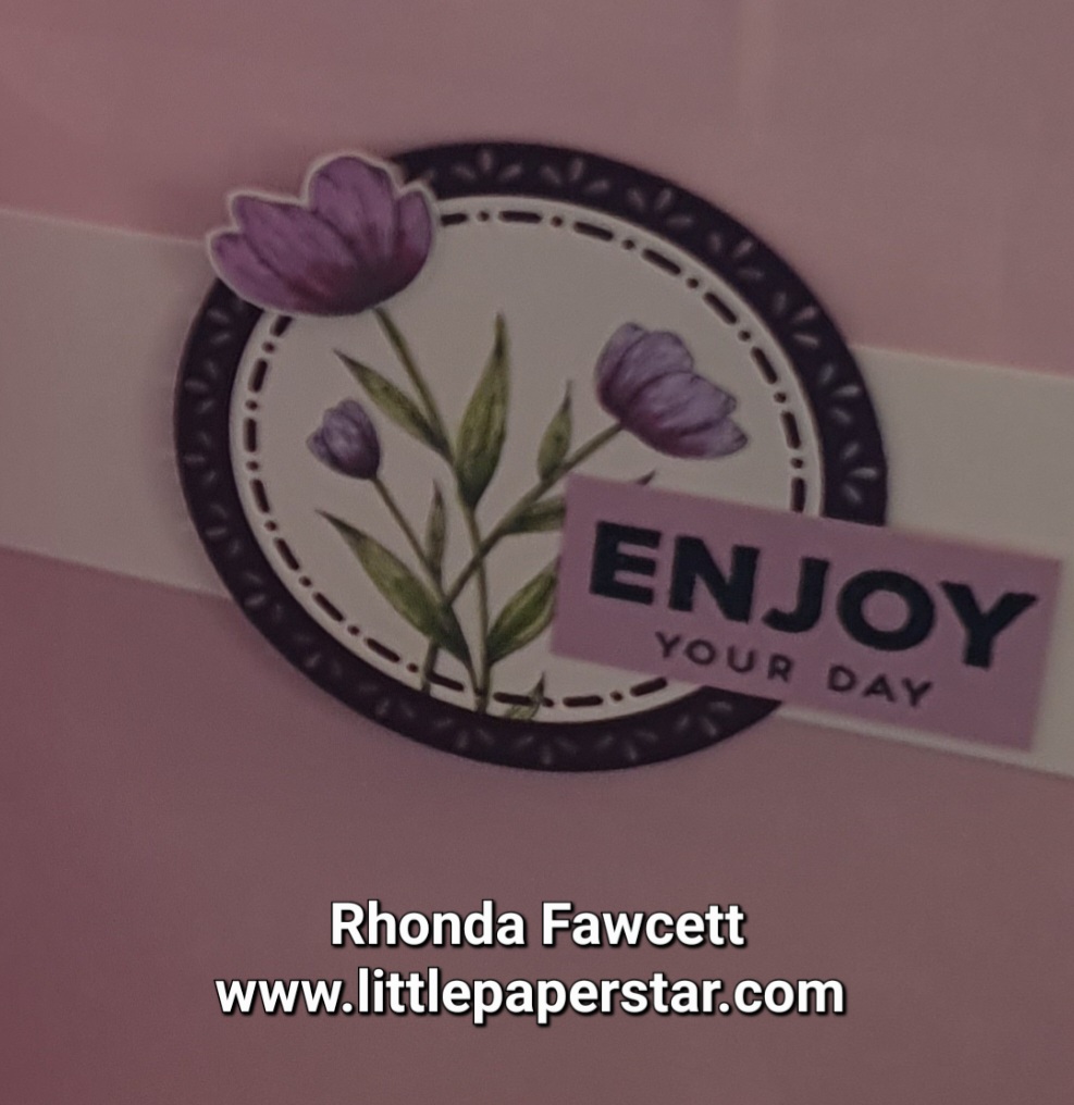 These gift bags were made using the Spotlight on Nature bundle. Pretty stamps and circle dies. The dies are amazing as there are 12 circles with different designs around the edges. I love this lacy edge on the dark Blackberry Bliss circle.