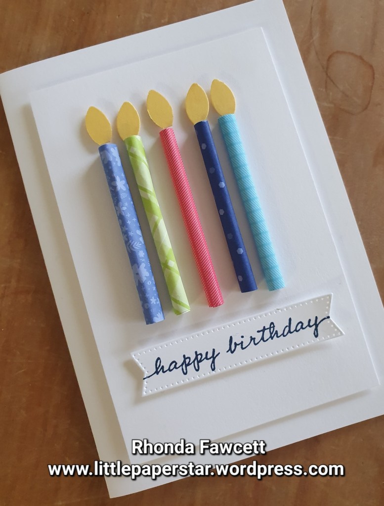 I wanted to show the ladies at the scrapbooking class that this type of embellishment could also be used for making a birthday card. I used some retired in colour paper for this simple card. The candle flames are made using a leaf from the bough punch.