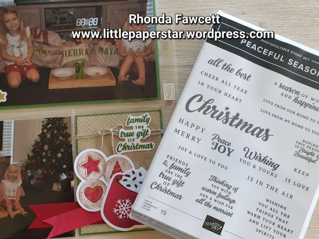 The words I used were from the Peaceful Season stamp set and inked with Garden Green ink to match the card and photo mats.