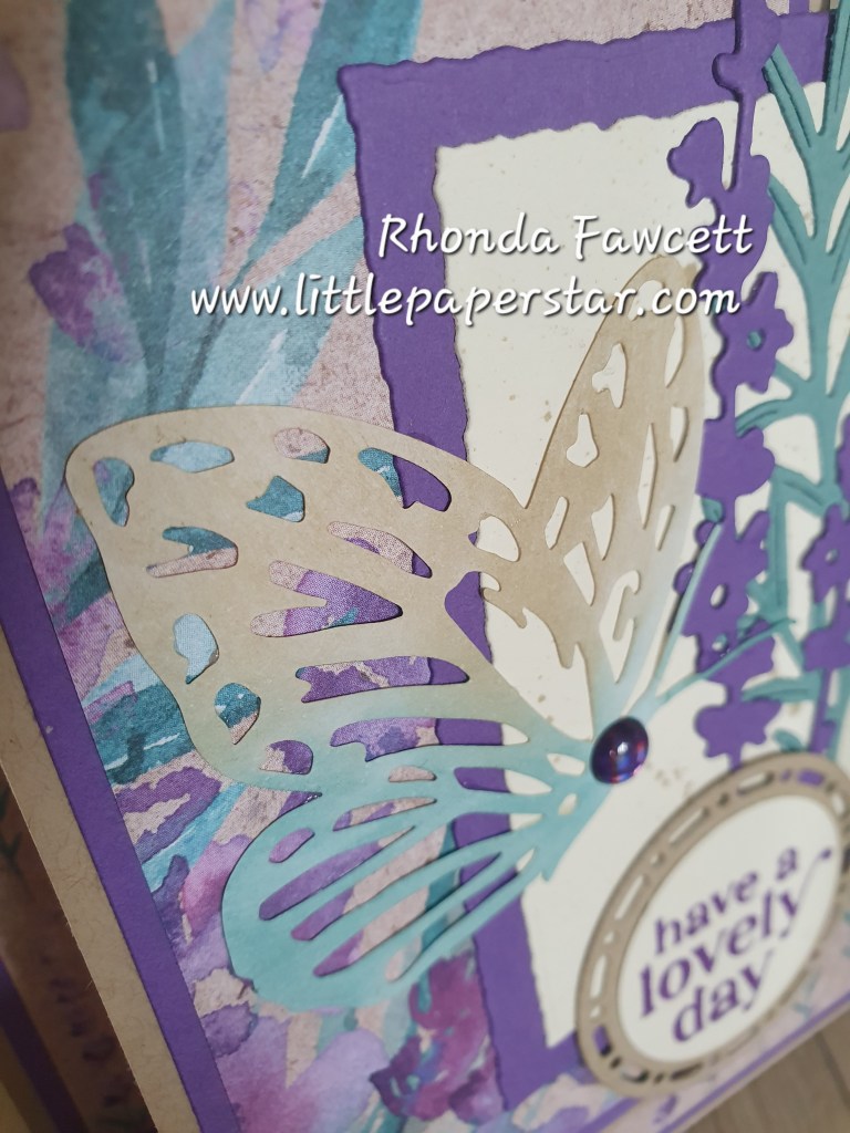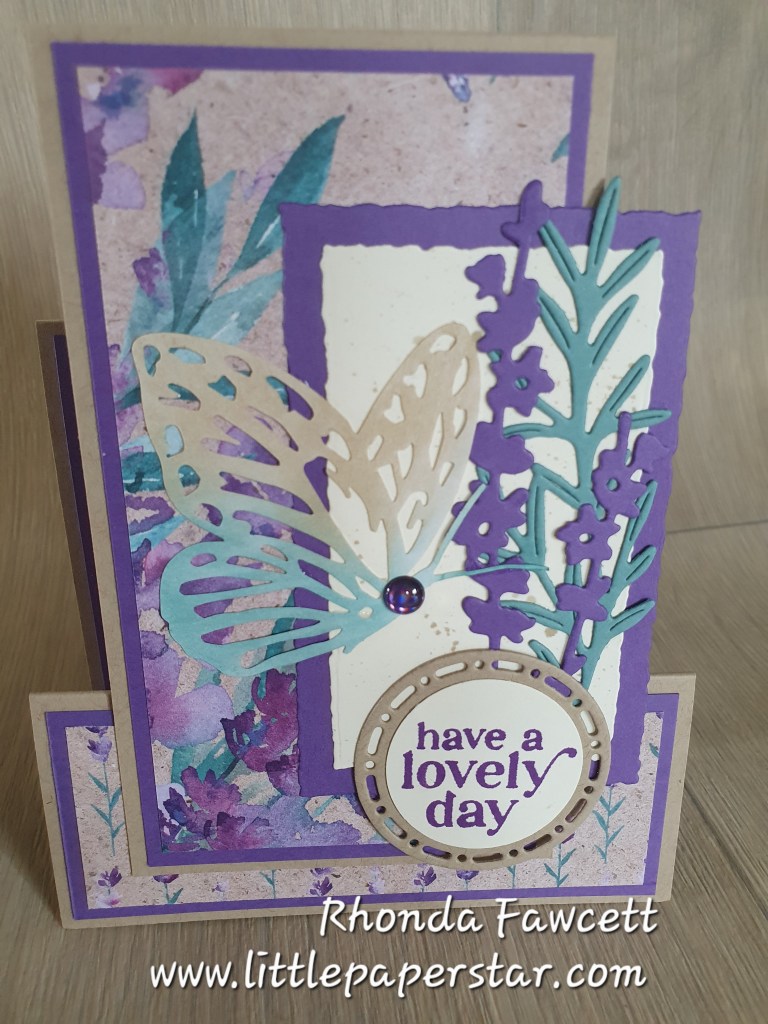 I used the popular Perennial Lavender Designer series paper to decorate the step and centre piece. The dies are from the same Perennial Lavender suite and are still available for purchase on Stampin’ Up’s! Last Chance list.