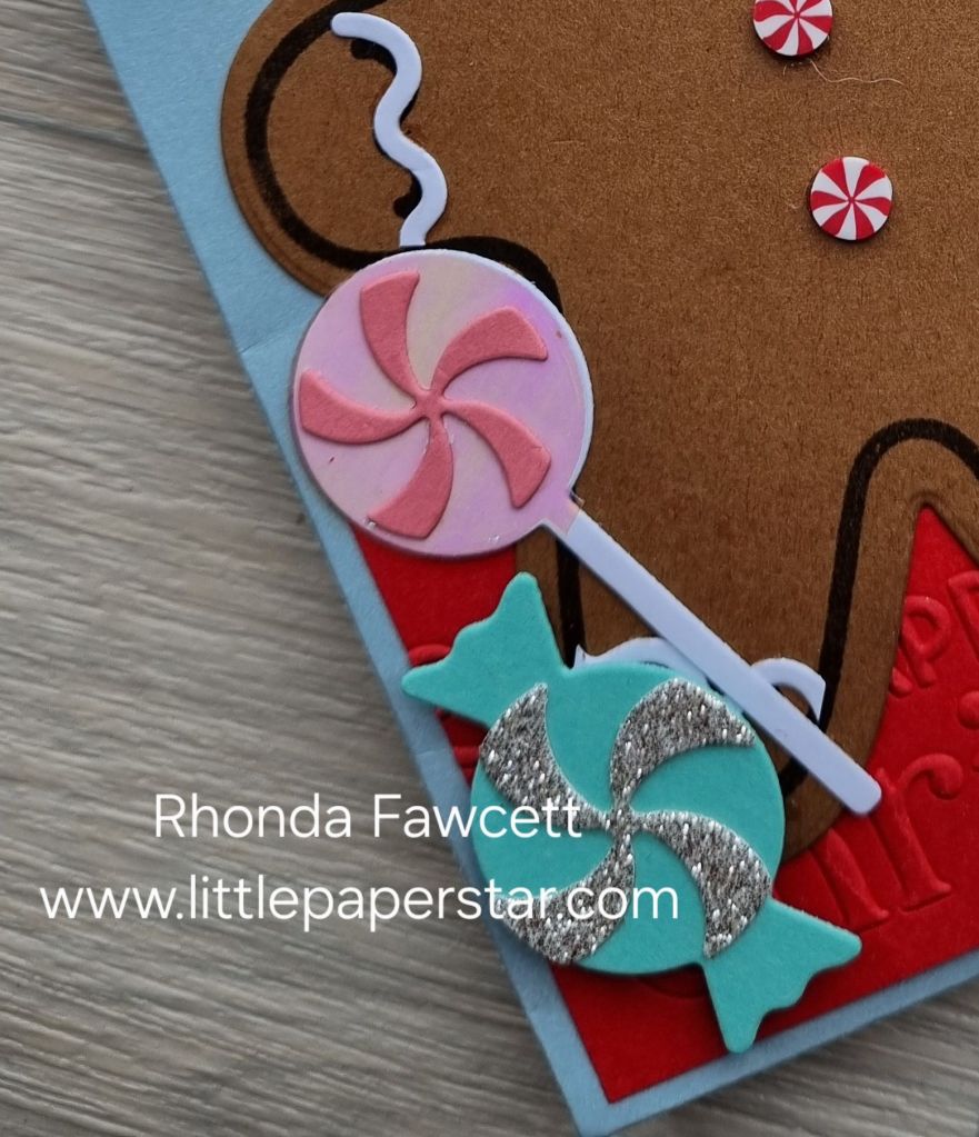 2) Embellishments: One of the lollipops on the card front was made by die cutting a circle from another treat bag. These treat bag make great embellishments when you cut them out. I have seen lovely flowers and leaves made from them.