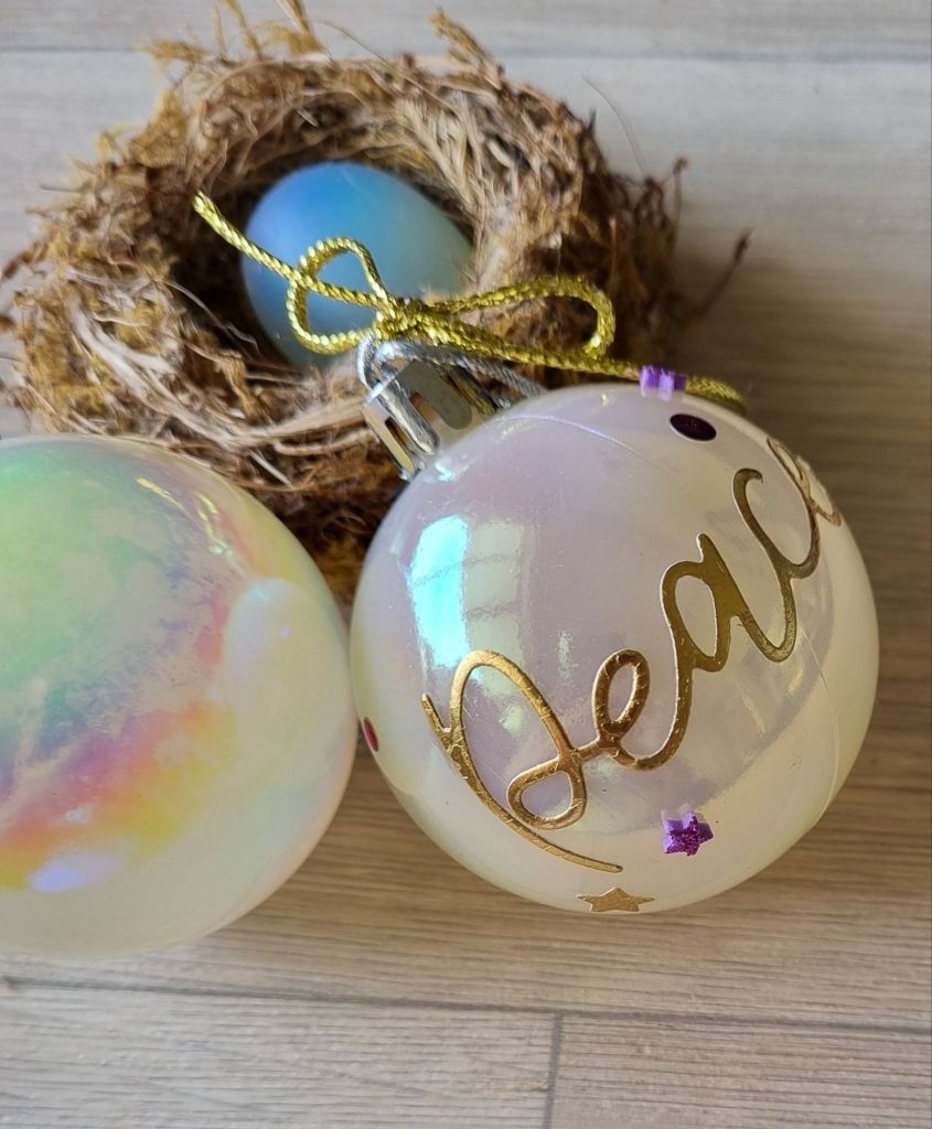 I recently was at a church women’s night and we decorated these Christmas iridescent baubles. The Stampin’ Up iridescent bags were the perfect packaging for them.