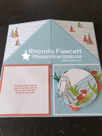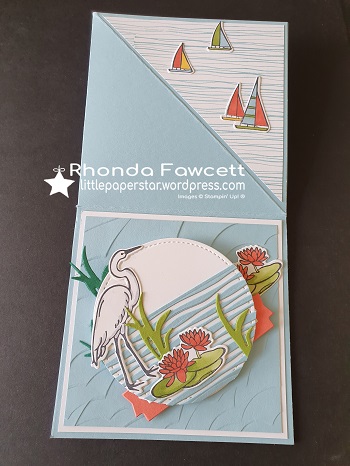 This card uses the Lilypad Lake stamp set and matching dies. The mechanism for folding is pretty easy to make but the colouring and die cutting of all the little pieces is quite fussy.