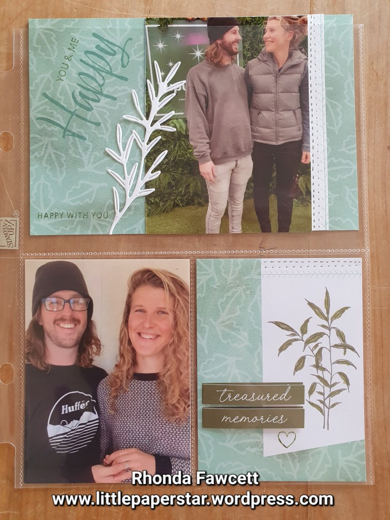 This page features some cards from the Thoughtful Journey Memories and More card pack. I added some simple stamping using the “Love this Moment” stamp set, (which isn’t in the current catalogue but is available on line). I also added a leaf die cut from the “Painted Lavender” dies.